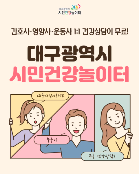 대구 시민이라면 누구나 무료로 이용할 수 있다고 하니, 건강에 대한 관심이 많은 분들이라면 어떻게 시민건강놀이터를 효과적으로 이용할 수 있는지 알아보세요!