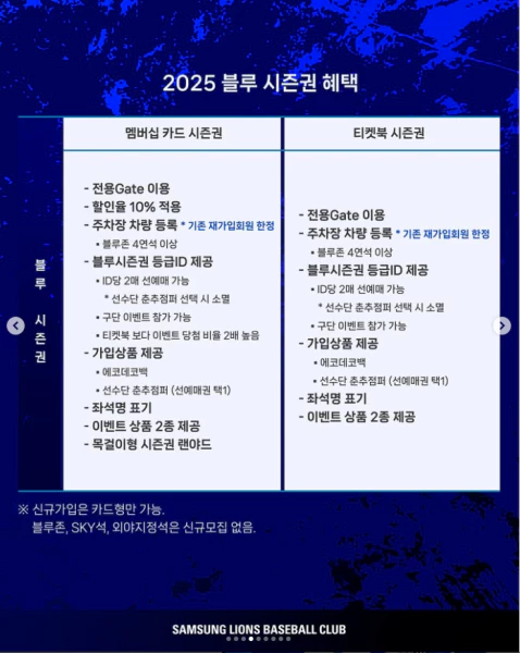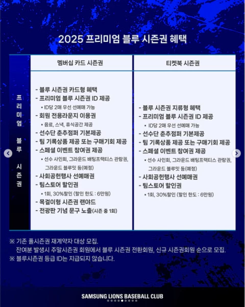 - 특징: 프리미엄 블루 시즌권은 고급 좌석을 제공하며, 더욱 많은 혜택을 누릴 수 있습니다.