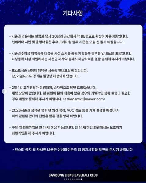 공식 정보는 삼성라이온즈 공식 홈페이지를 참고하세요.
