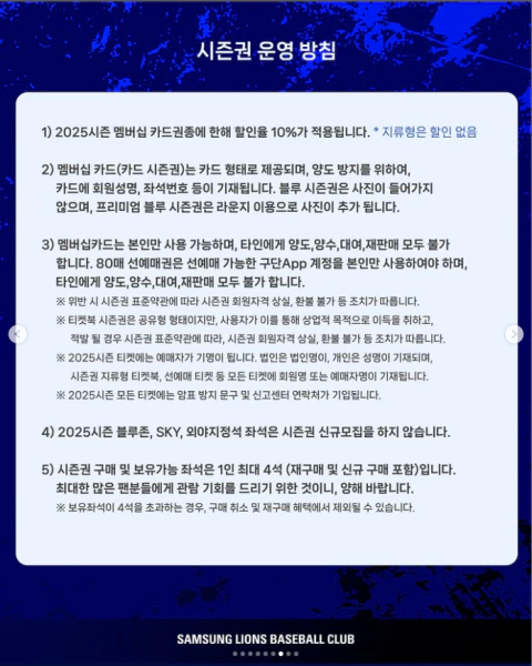 시즌권 운영에 관한 방침도 중요한 요소입니다. 삼성라이온즈는 효율적인 시즌권 관리와 편리한 이용을 위해 다양한 운영 방침을 마련하였습니다.