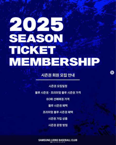 삼성라이온즈의 2025 시즌권이 본격적으로 판매를 시작했습니다. 시즌권을 통해 매 경기마다 멋진 관람 경험을 얻을 수 있는데요. 2024 시즌에는 성적이 좋지 않았던 삼성라이온즈가 한국시리즈에 진출하여 준우승까지 기록한 성과로 팬들의 기대감을 한껏 높였습니다. 특히, 외국인 선수 계약과 FA 계약을 통한 강한 5선발 체계 구축으로 2025 시즌을 더욱 강하게 준비하고 있습니다. 이번 시즌권 가입 일정을 포함한 가격 정보와 다양한 혜택을 소개해 드리겠습니다.